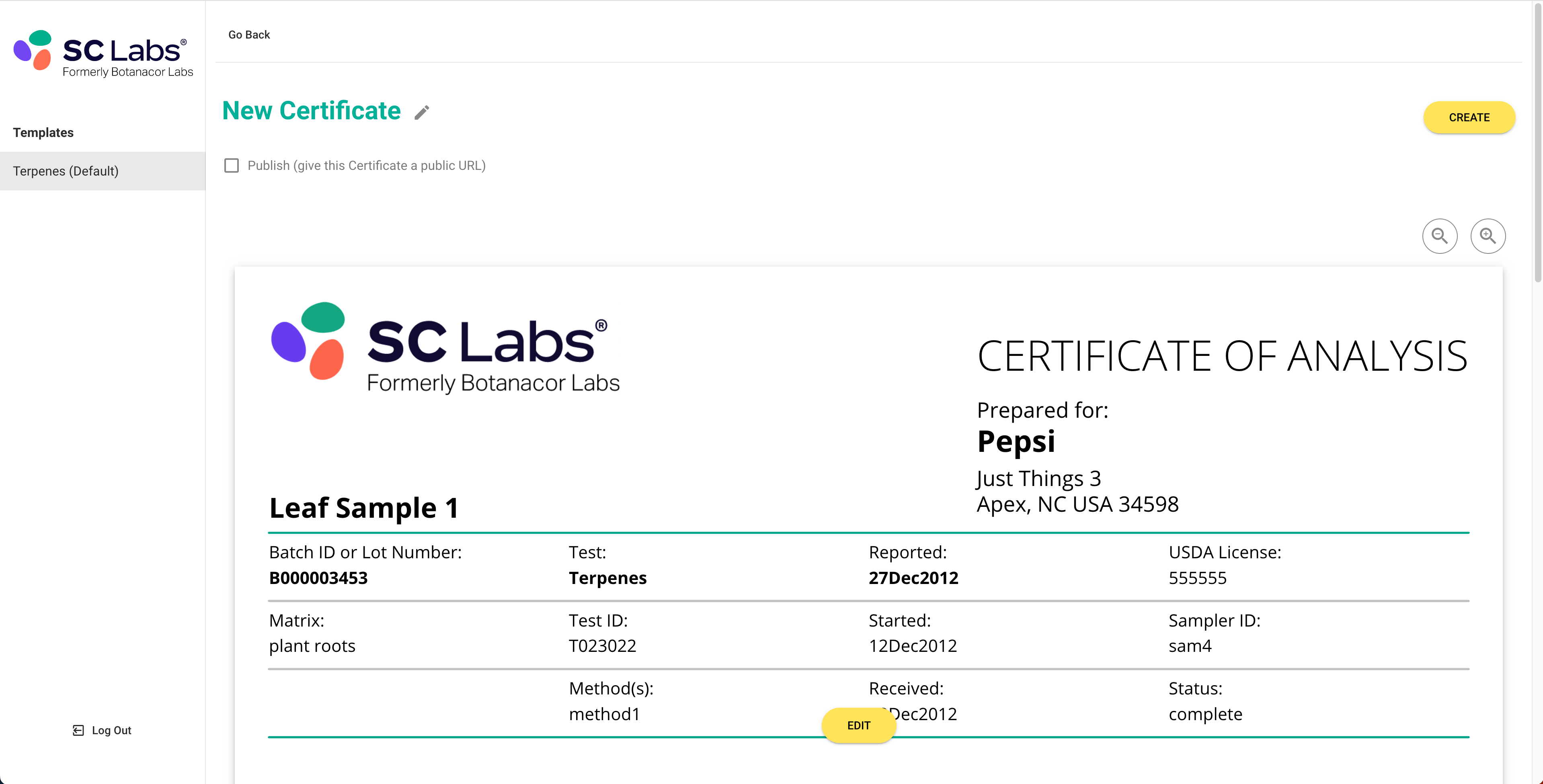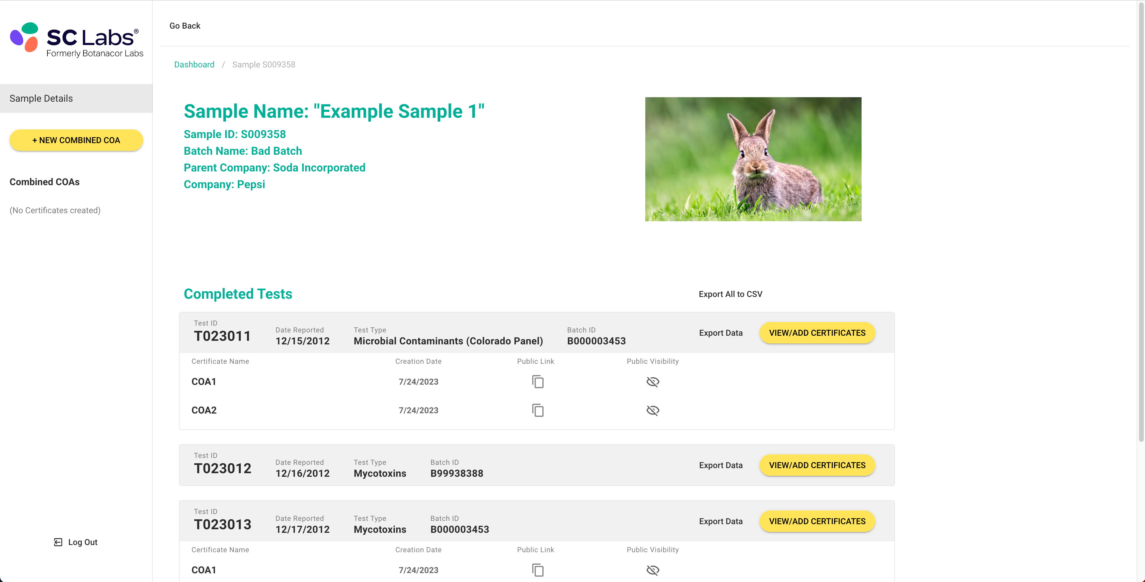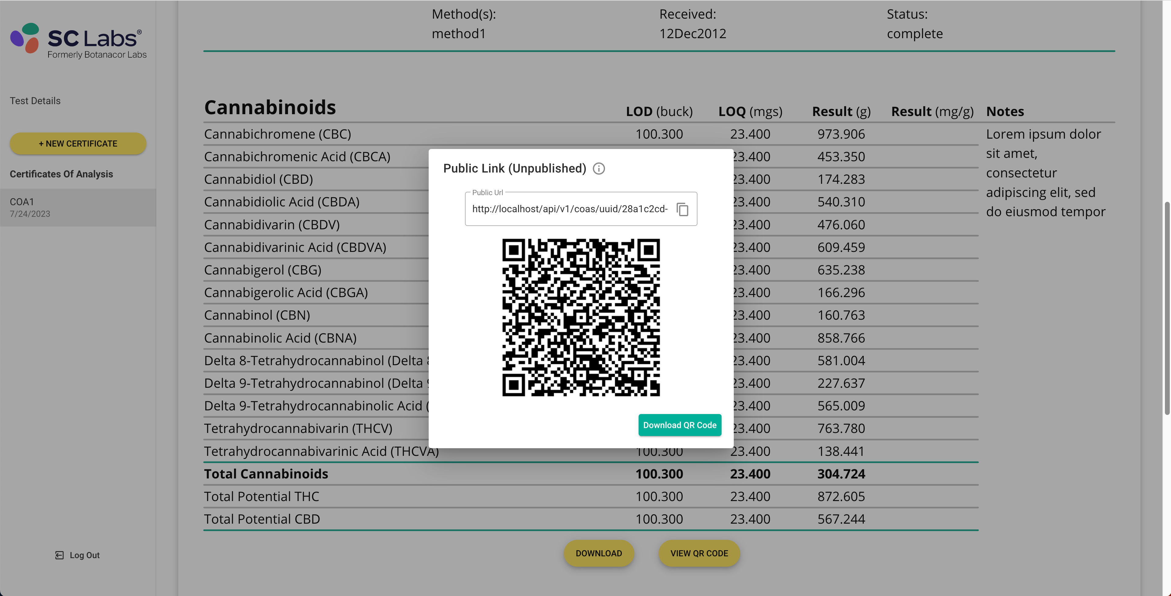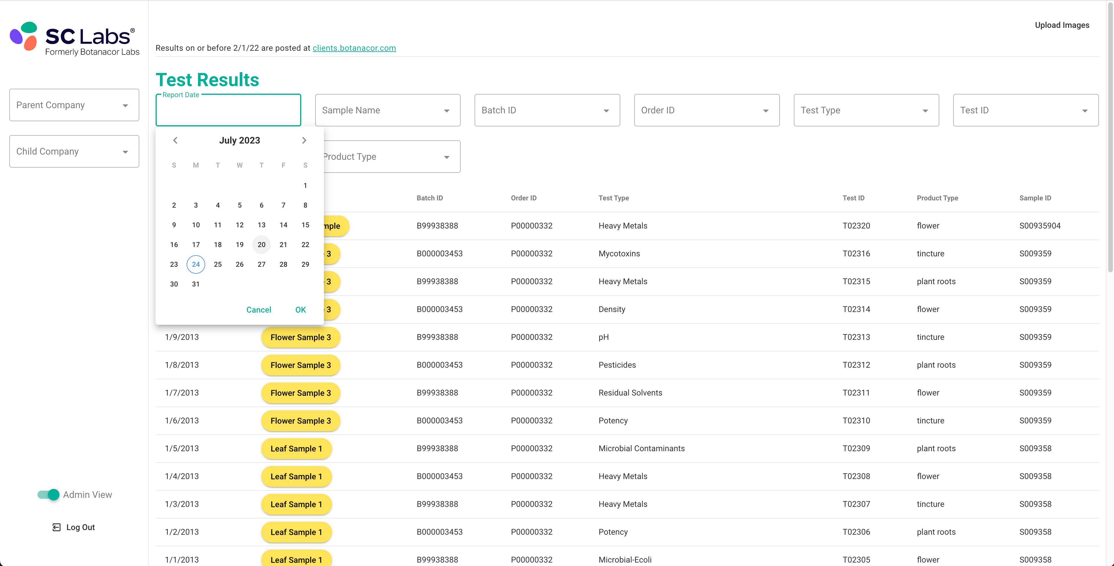 A dashboard built for a cannabis/hemp regulatory testing lab.